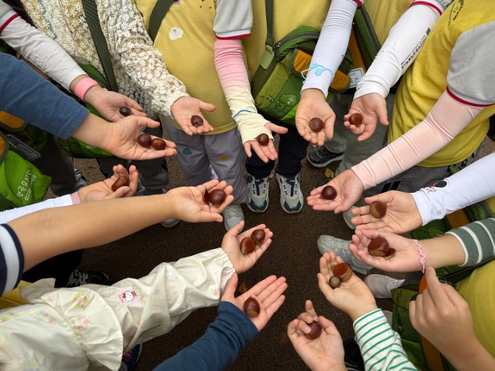 떨어진 밤송이에서 밤도 찾아보며 즐거운 시간을 보내고